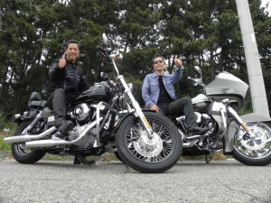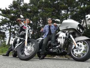 | 初プチツーは弟と。 近場を回って記念撮影。 CVOはマトリックスのようだ。 |