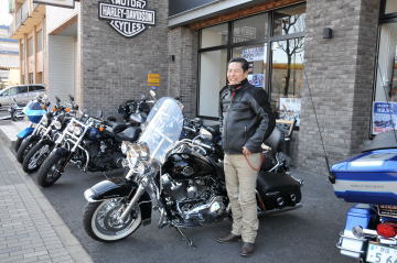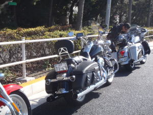 お互いにカメラを持ちあって、写真撮りまくり。 CVOはワイド&ローで流れるようなフォルム ロードキングはどっしりとしたスタイル やはりツーリングモデルは風格が違う 頼もしい一台にめぐり会えた。 |