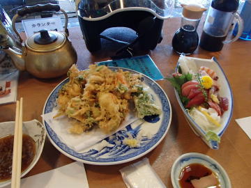 お刺身とかき揚げを頼んで満足満足。