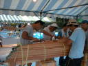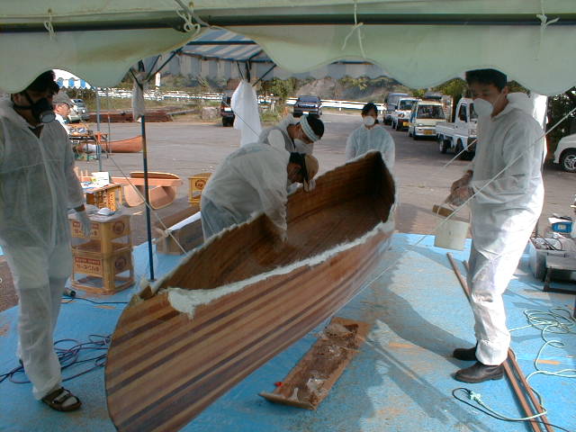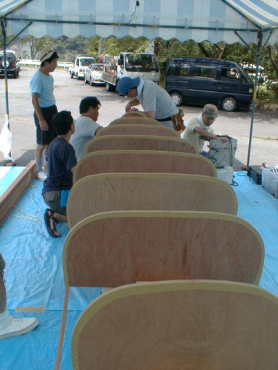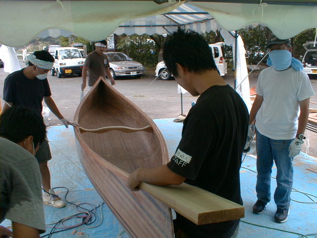 3日目:いよいよ仕上げ作業。まずガンネルを取り付け、スォート、シートを取り付け午前中に完成です!