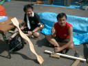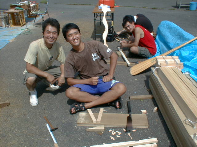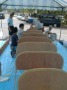 二日目:それぞれ分かれてパーツ作りです。スォート、パドル、シート、作業は順調です。