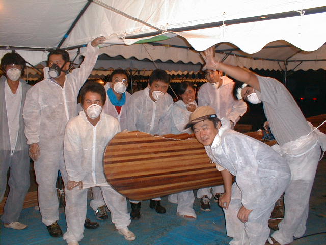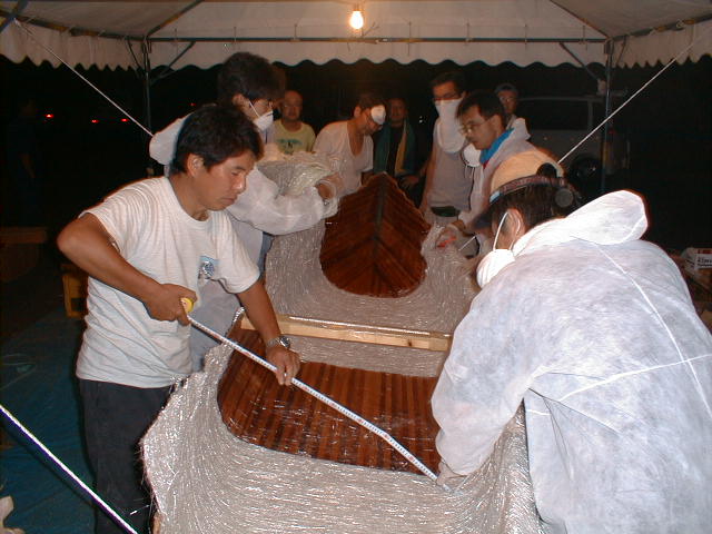 さて午後からFRP加工です。LA1、シーラー、そしてFRP。2回目に塗ったFRPが乾かず夜に突入。