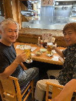 | 曲の完成を祝って、ハイ、ポーズ 2023年の夏はとても暑く、 9月下旬にも関わらず半袖短パンのオヤジたち。 |