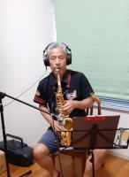 当日一番早く到着したのが下田君。 なぜなら管楽器のサックスは、一般の部屋で吹くと近所迷惑になりかねない。 村井宅は角部屋で隣と隣接していないので、比較的気持ちは楽だが、それにしても夜まで吹くわけにはいかず、 早めに決着をつけなければいけなかったからだ。 おかげさまで2~3テイクでサックスの録音は成功! 事前にかなり練習しておいて、ホッとした。 |