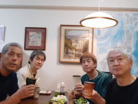 各パートの録音も無事に終わり、あとは全体のミキシングを残すだけとなった。 ひとまず乾杯! エピソード話や思い出話は尽きることなく夜は更けていった。 |