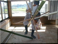 最後にはみ出た竹をカットして 出来あがりです。 どうです!見事でしょ。 さすが職人のなせる技。 |