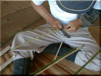 四分の一に裂いた竹を さらに3つに、そしてそれを 2〜3枚におろします。 これで材料の出来あがり。 |