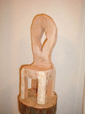 | カービングチェア キャノンバーチェーンソー一本で削り出したチェア。 カービングの初級とも言えます。 |