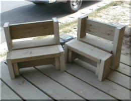左右を対照に作ってから座面の 取付けを行ないます。 背もたれをつけると格好いいでしょ! |