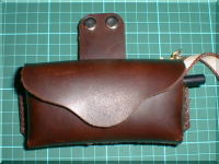 | 型紙のサイズを そのまま皮の裏側に 書き写します。 ナイフで慎重にカットします。 特に凹面のカットは ナイフが入りすぎるので要注意! |