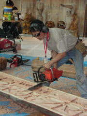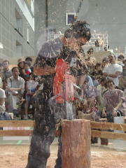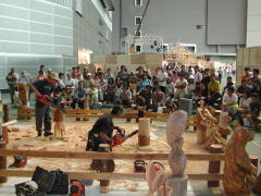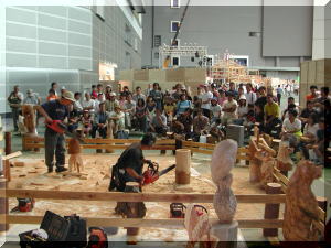 会場内に響きわたるチェーンソーの音でギャラリーは山のようになっていました。やはり動きのあるブースはヒトの集まり方が違いますね!