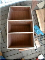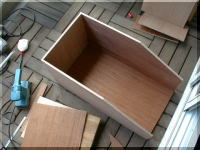 水性ニスで仕上げを行ないます。 1〜2時間で乾きます。 あとはお気に入りの取っ手を 付けて完成です。 おまけに残ったコンパネで 小さいボックスも作っちゃいました。 |