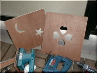 | ここまで来ればもう騒音の 心配はありません。 あとはゆっくりジグソーで 好きなデザインで飾ります。 |