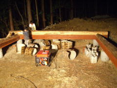 この土台作りの前に一度現地視察で来たことがあり、その時ヒノキのログテーブルを作った。
