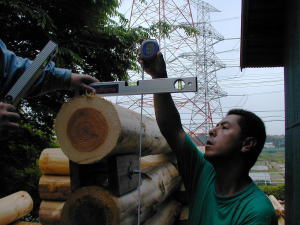 A午後から早速1/2ラウンドに挑戦。二人で動かす材の重さはさすがにキツかった!