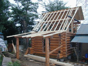 さあ次は垂木貼りです。16フィートの2×4を乗せていきます。