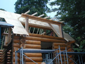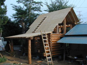 まずは軒の垂木を貼り、次にドーマーの垂木と元屋根の野地板貼りをしました。