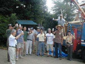 「あとすこし、少しずつ入ってる、あとちょっと」 やった!上棟完了です!