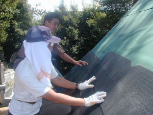 A続いて麦さんの登場で、北側の屋根貼りの開始です。