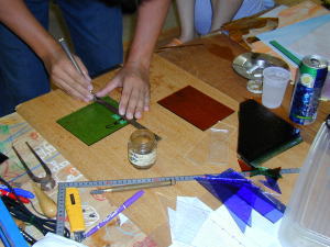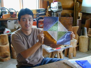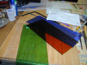 今日は、ドア用の窓、ステンドグラス作りです。