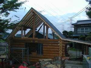 B次は軒先の破風板、鼻隠しを2×6で収めます。そしてルーフィングを貼ります。