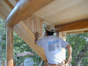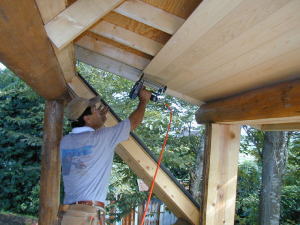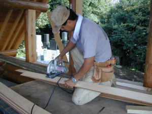 @ヒノキの合板が1坪3000円であったので、屋根の内張り用に15坪ほど買い込んで、