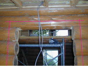 E次回はこの墨に沿ってチェーンソーで切り落とします。