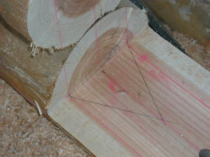 Gこのデザインカットは最初の刃の入れ方が難しいのです。下に罫書いた30度のガイドラインと