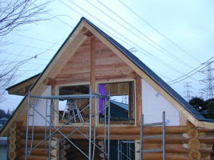 今日の作業は妻壁両側の上部の仕上まで出来ました。