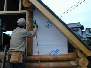 (本来は母屋があるので合板を貼る必要は無いようですが、今回は断熱も含め貼ることにしました。)