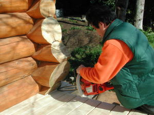 Eログエンドの部分はマルノコで処理できないのでチェーンソーで丁寧にカット。