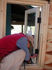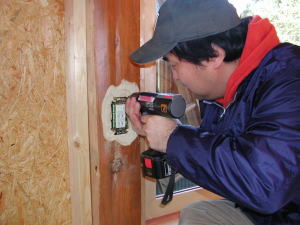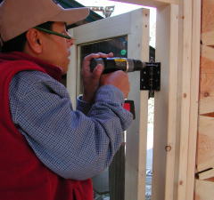 Aボクは早速一階の窓枠の取り付け作業です。