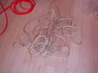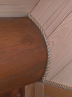 ご覧のとおり、麻のロープを妻壁の淵に這わせて、フィニッシュネイラーで