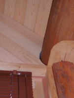 妻壁の仕上げ材とログとの間に出来た隙間を埋めることにしました。