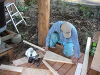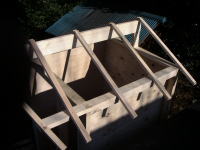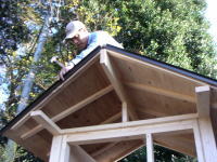 小さな屋根なのでツーバイ材で十分屋根を支えられるので、コスト&作業効率を優先。