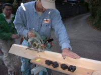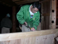 3人がかりで、支えながら兆番を打ち付けていきます。
