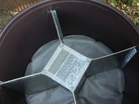 4室の底にフィルターを設置して、ハエ避けの網を張って中の組み立ては終了です。このあと中に10cmほど土を入れます。これでホントに良いのかな〜?