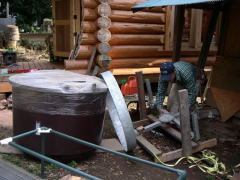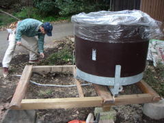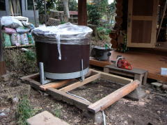これが例の直径1150mmのコンポストトイレ。 まるで五右衛門風呂のよう。