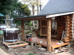 この樽の左側半分が室内になります。右側には煙突が立ちます。