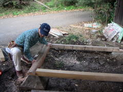 このフレームを基礎の上に設置。まだ固定はしません。