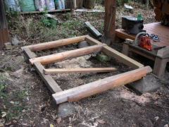 角材は2本、あとは太鼓ログしかないので、日の字に組み合わせます。