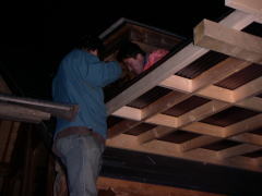 軒の上での作業。