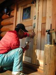 本来の建築では、最初にやるのかもしれませんが、ログシェルを組む段階では、