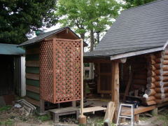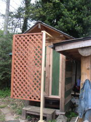 トイレの入り口が開けっぴろげなので、ラティスで目隠し。