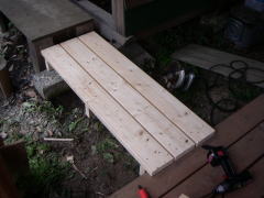 トイレも綺麗にしたから、渡り廊下も作り直しましょう。