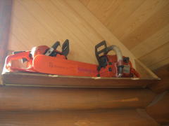 チェーンソーを乗せれば、すっかり自慢のツール棚になりました。