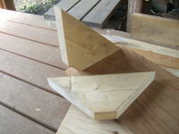 ツーバイ材を三角に切って妻壁に取り付け。