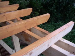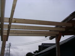 パーゴラなので、垂木の間隔は少し狭めて300mm間隔に乗せました。