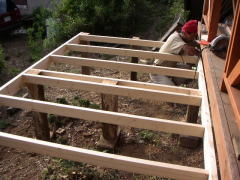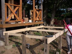 既存のデッキの基礎に2×6を貼り付け、増設デッキのベースにします。