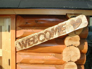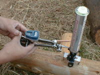 | スクライバーとプラムボード ハンドカットログを行なうには、この二つの工具が必要となります。スクライバーは丸太が重なり合う部分を隙間無く切り取るために罫書く特殊なコンパスで水準器が付いています。プラムボードは地球の鉛直線をを撮るためのガイドです。このプラムボードにスクライバーをあて、水準器をあわせてから罫書きます。 最初は非常に難しい作業ですが、ノッチの精度はこれで決まります。 |